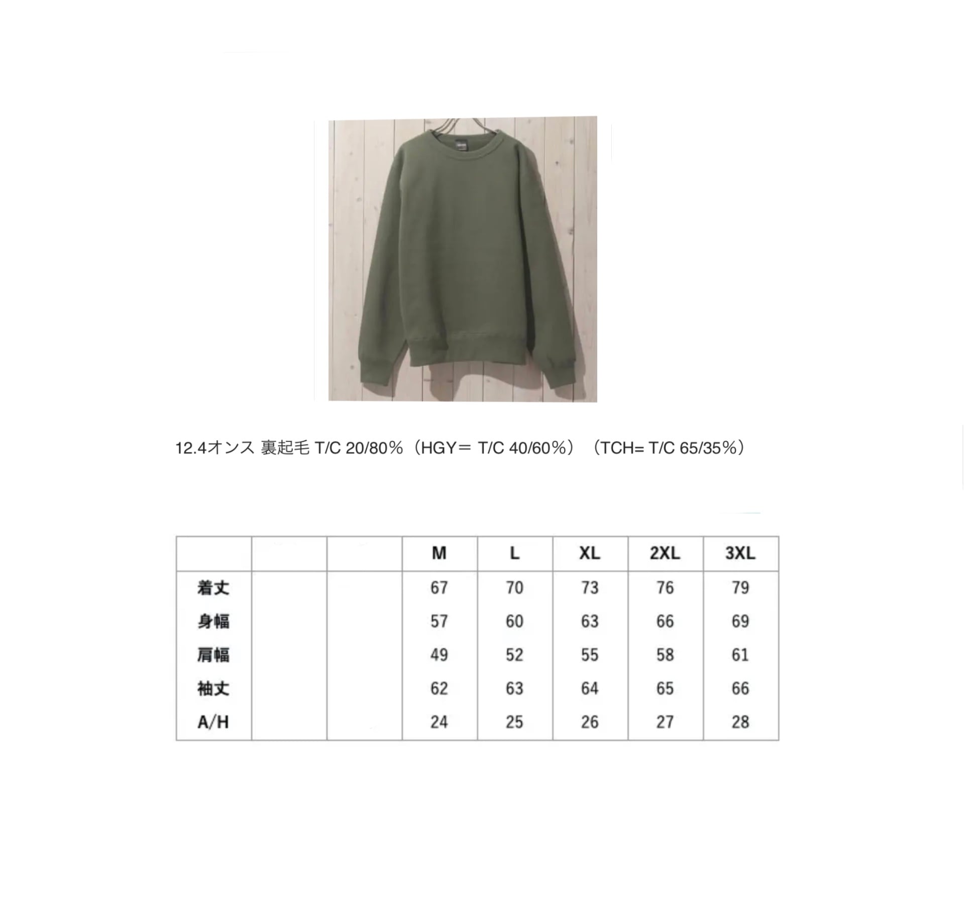 12.4オンスの裏起毛で